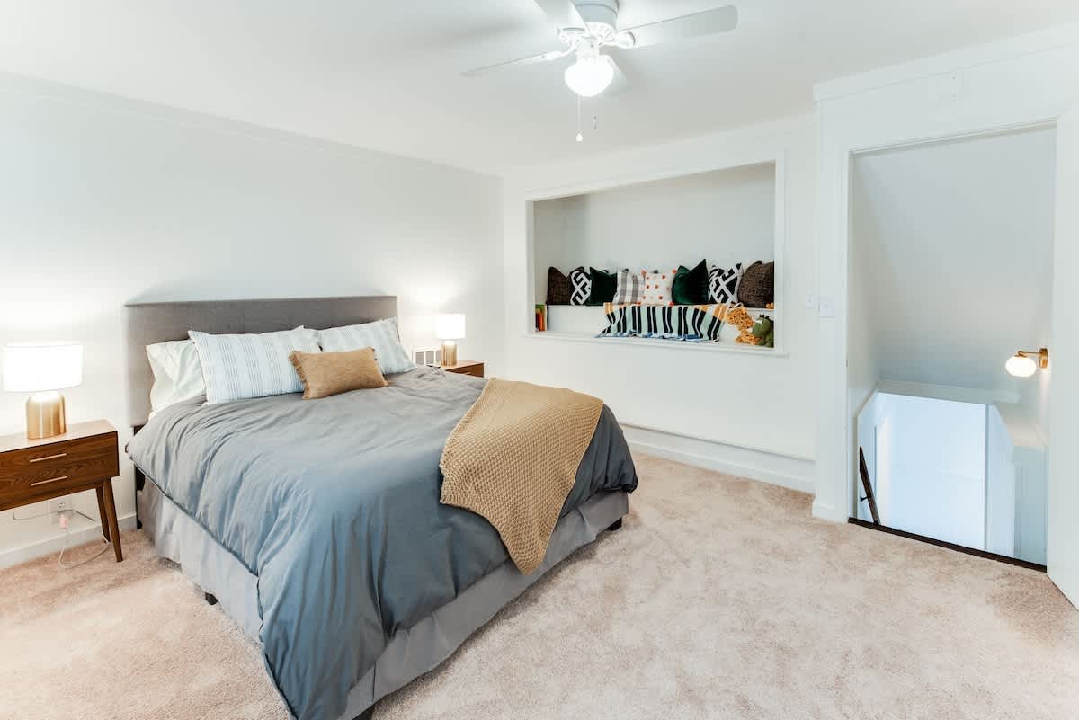 Equipped with 4 beds, 2 baths, renovated & fully furnished. New Queen beds with memory foam mattresses, modern kitchen, washer/dryer. 4 Smart TVs, high speed internet, outdoor patio with fire pit, grill, and plenty of parking. MINUTES FROM DOWNTOWN TUSCALOOSA AND BRYANT DENNY STADIUM. It's a perfect location for visiting your favorite student at UA, crashing after a local concert, or Tailgating before a big game!